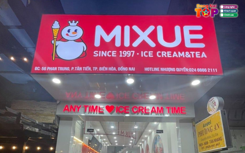| Mixue | CN1: 3 Lê Lợi, Xuân An, Long Khánh, Đồng Nai CN2: Bùi Văn Hòa/47 Tổ 3, Khu Phố 5, Biên Hòa, Đồng Nai CN3: C9 đường 30/4, Trảng Bom, Trảng Bom, Đồng Nai CN4: 9 QL1A, Hố Nai 3, Trảng Bom, Đồng Nai, Đồng Nai | 0966 077 807 |